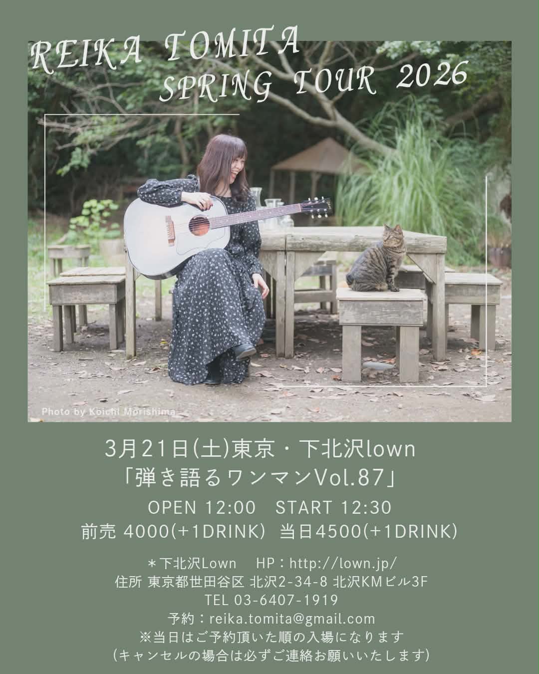 3月21日(土) 東京・下北沢lown 『冨田麗香 弾き語るワンマンVol.87 〜SPRING TOUR 2026〜』