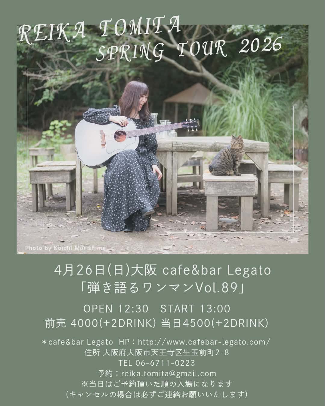 4月26日(日)大阪・谷町九丁目cafe&bar Legato 『冨田麗香・弾き語るワンマンVol.89 〜SPRING TOUR 2026〜』