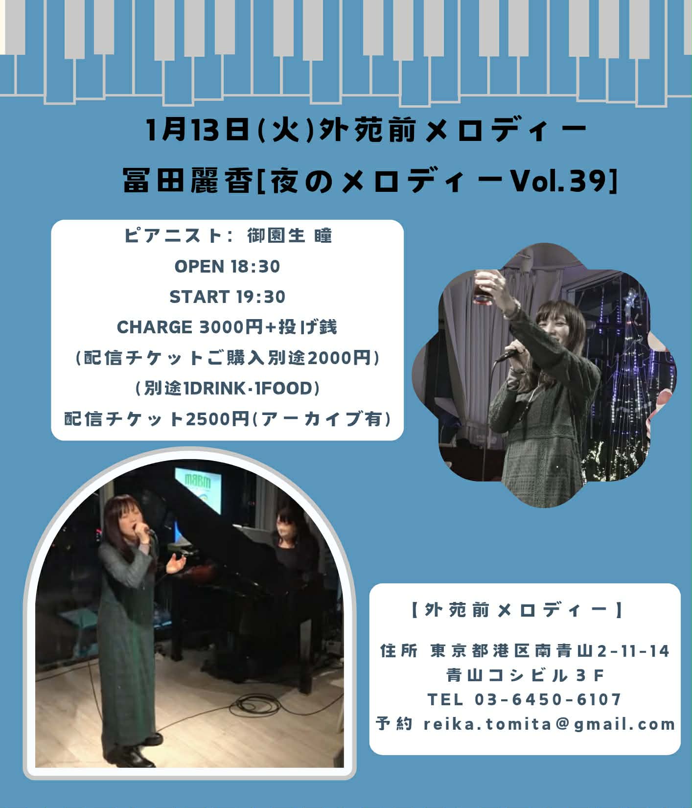1月13日(火) 外苑前・メロディー 『夜のメロディー Vol.39』(有観客&配信カバーライヴ)
