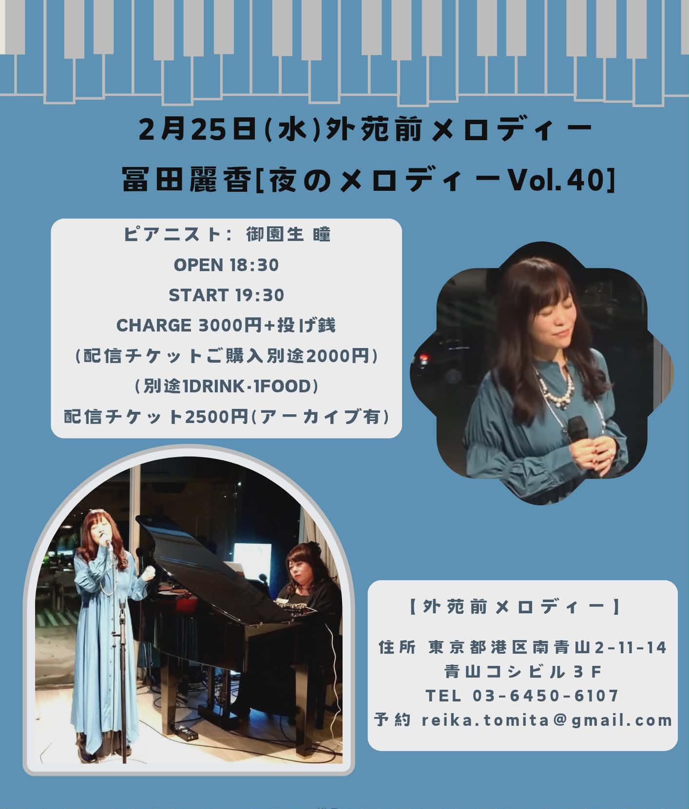 2月25日(水) 外苑前・メロディー 『夜のメロディー Vol.40』(有観客&配信カバーライヴ)