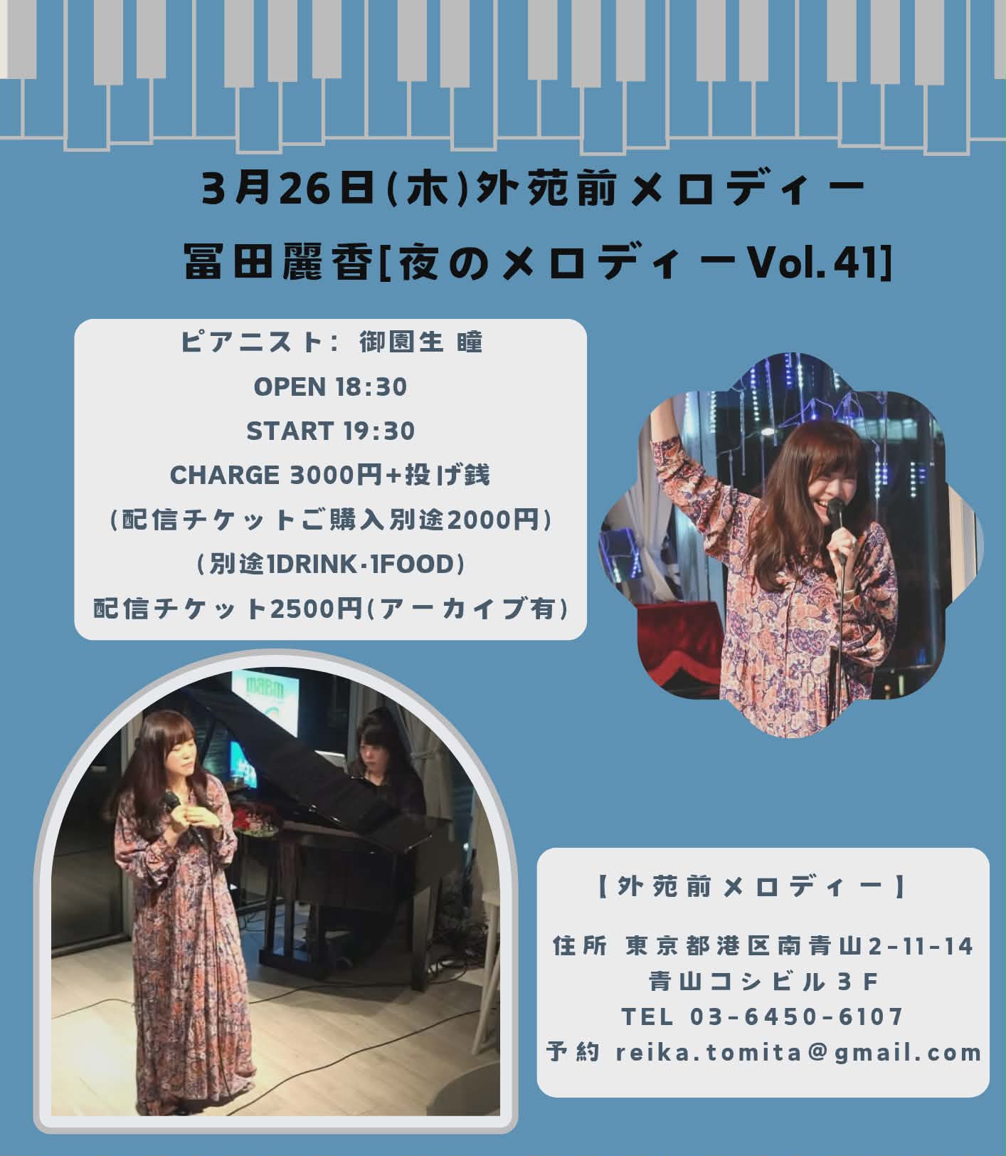 3月26日(木) 外苑前・メロディー 『夜のメロディー Vol.41』(有観客&配信カバーライヴ)